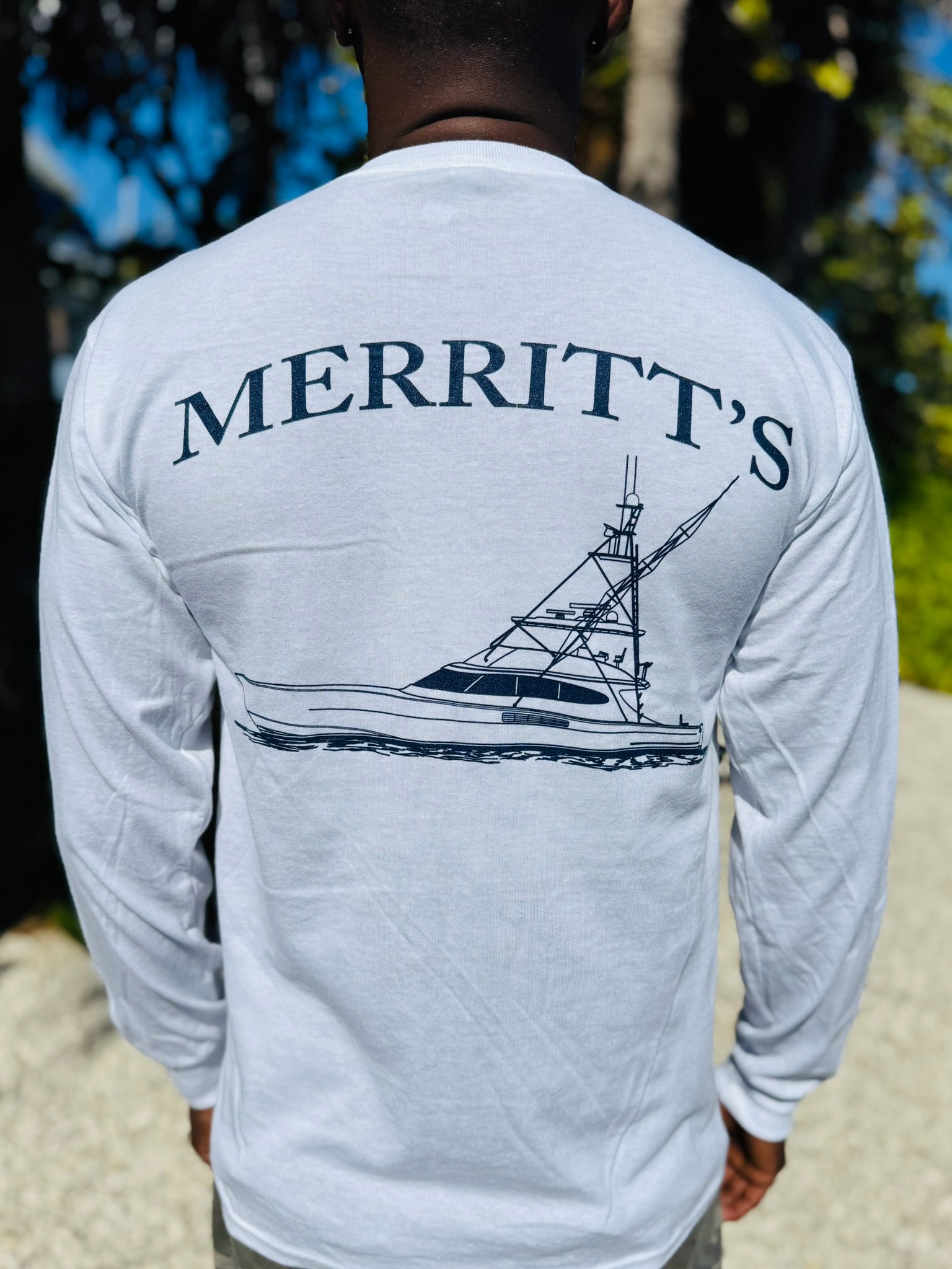 Since Buddy Merritt was behind the design of Merritt's signature unbroken sheer line, this shirt honors him with his name. As a teenager, Buddy Merritt took the helm of a charter boat in his family's Caliban fleet, operating in both New York and Florida. His competitive spirit and innovative approach to boat and tackle design made him a standout in the fishing community. In the late 1940s, Buddy transformed tuna fishing at Cat Cay using a groundbreaking technique with a long line extended from the bridge, and he pioneered the use of a mast for spotting and baiting fish. He also made history by being the first to catch three swordfish on rod and reel in a single day. Dedicated to his craft, Buddy designed what he considered the ideal fishing boat, playing a key role in creating Merritt's signature unbroken sheer line. Originally, his 37-foot boats were devoid of the modern luxuries we expect today, having been designed solely to catch tuna fish. Buddy's significant contributions have elevated the Merritt name to represent excellence in both boat building craftsmanship and fishing, making it renowned in the industry.
