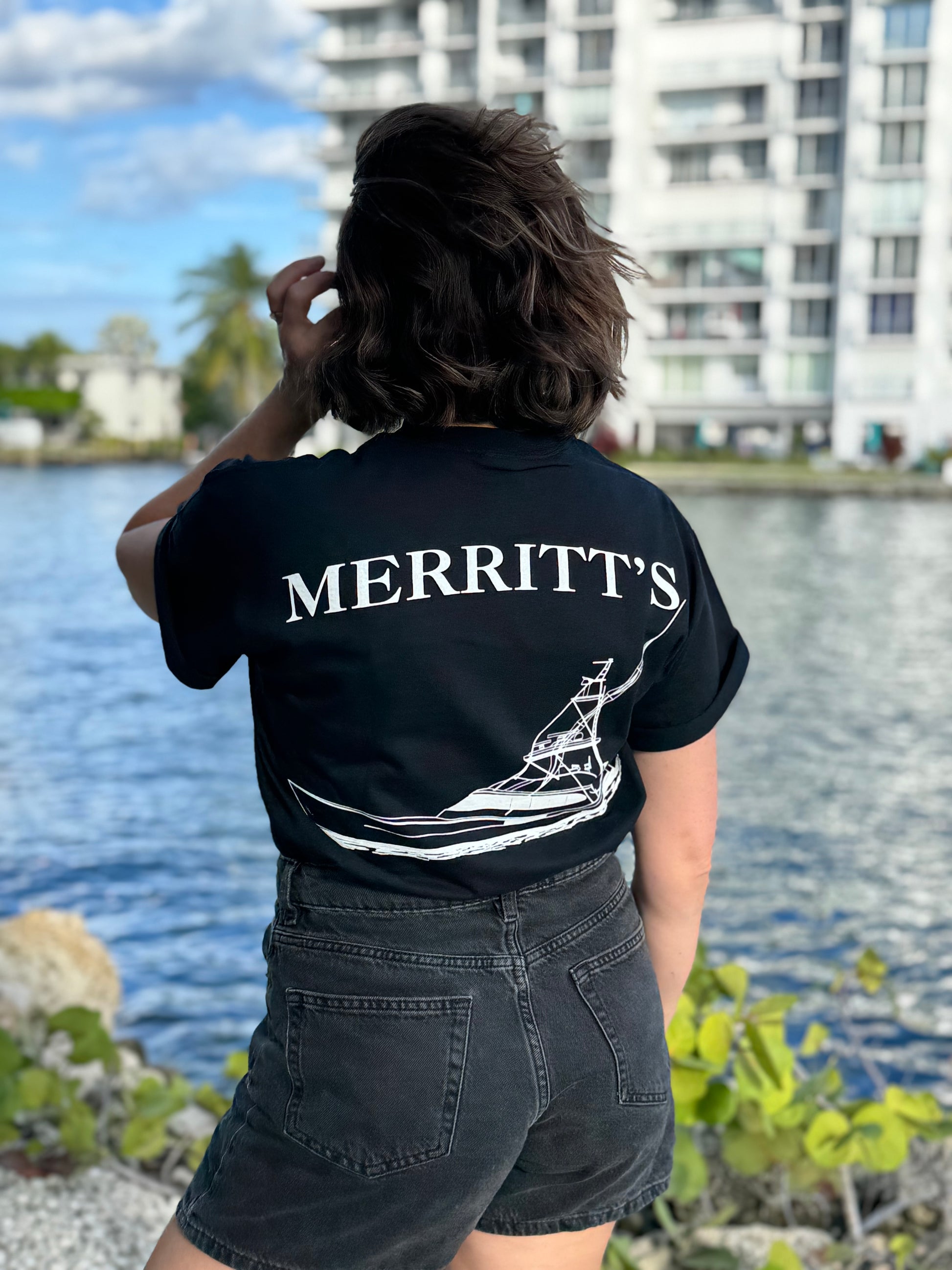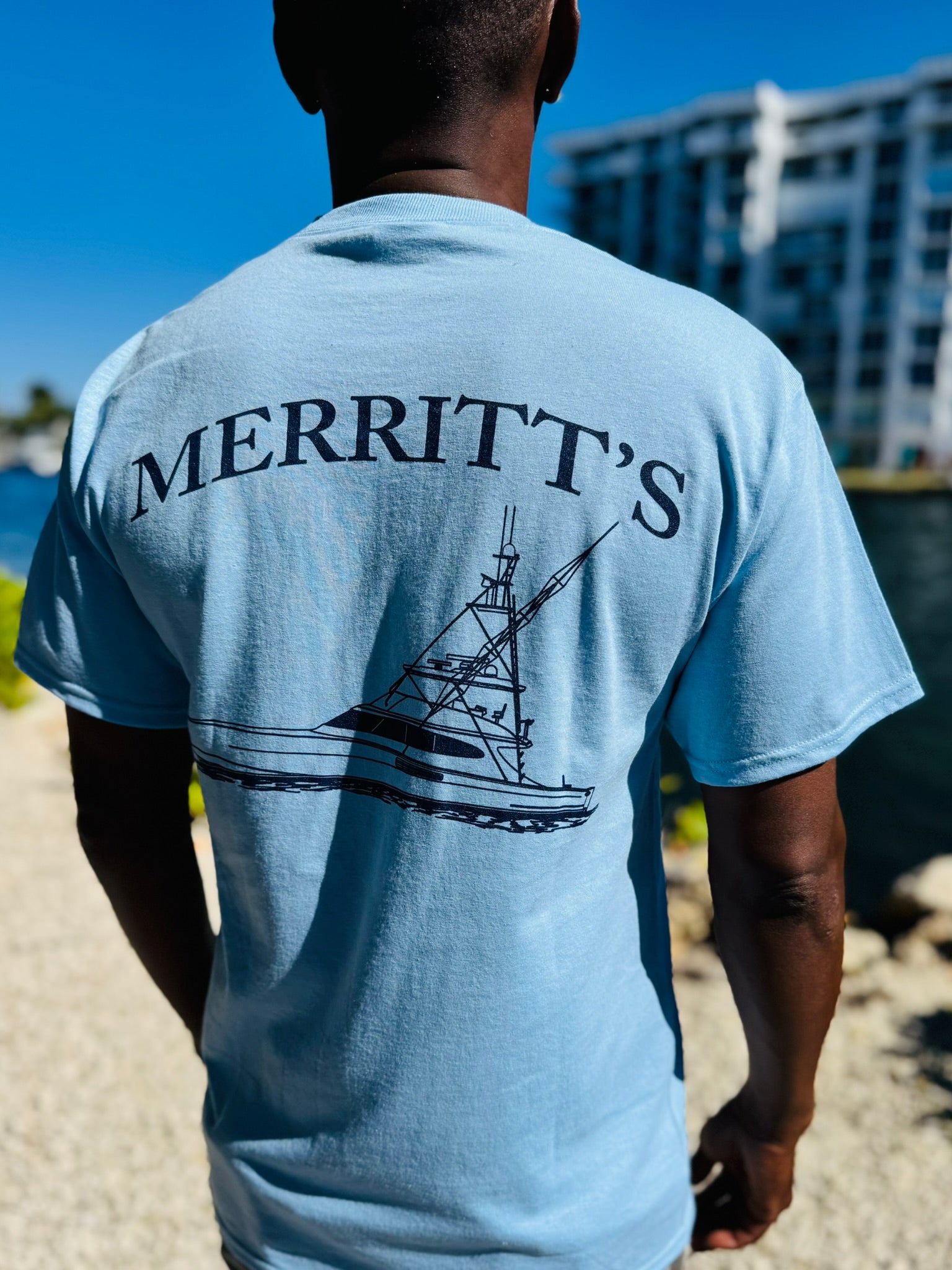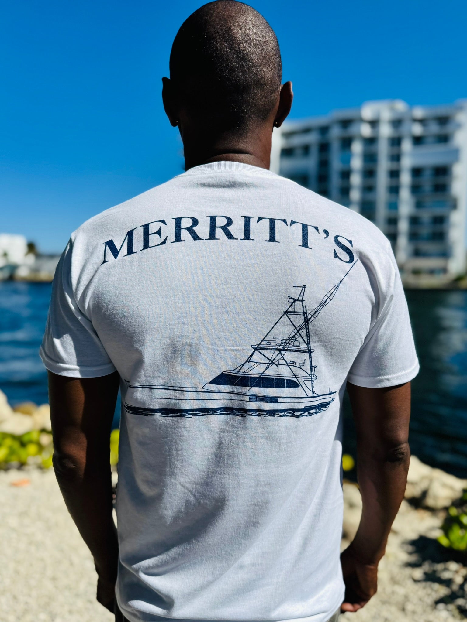 Since Buddy Merritt was behind the design of Merritt's signature unbroken sheer line, this shirt honors him with his name. As a teenager, Buddy Merritt took the helm of a charter boat in his family's Caliban fleet, operating in both New York and Florida. His competitive spirit and innovative approach to boat and tackle design made him a standout in the fishing community. In the late 1940s, Buddy transformed tuna fishing at Cat Cay using a groundbreaking technique with a long line extended from the bridge, and he pioneered the use of a mast for spotting and baiting fish. He also made history by being the first to catch three swordfish on rod and reel in a single day. Dedicated to his craft, Buddy designed what he considered the ideal fishing boat, playing a key role in creating Merritt's signature unbroken sheer line. Originally, his 37-foot boats were devoid of the modern luxuries we expect today, having been designed solely to catch tuna fish. Buddy's significant contributions have elevated the Merritt name to represent excellence in both boat building craftsmanship and fishing, making it renowned in the industry.